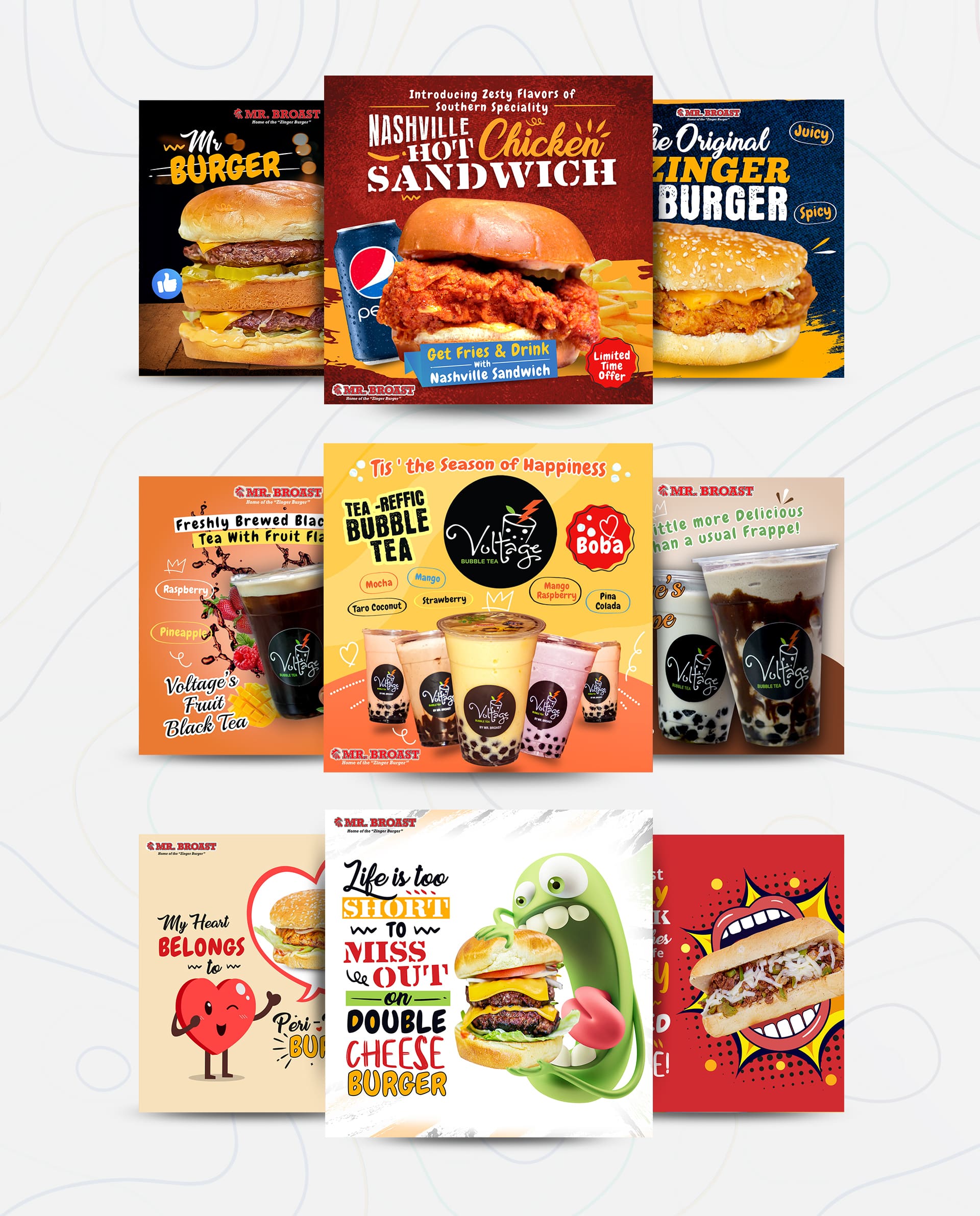 Social media presence matters in the age of digitalization, and we make sure Mr. Broast is an impactful one. Admark scattered new menu awareness through promotional campaigns and deployed social media strategies on Facebook and Instagram to enhance community engagement. In addition, the brand was promoted by engaging Facebook ads to reach out to people in their demographic as well as the psychographic zone. Admark Digital’s experts put tooth and nail into planning the editorial calendar, which included charting outposts, keeping up with the trend, and crafting target audience tailored content. In addition, regular updates were put up on both platforms to keep customers up-to-date on what’s new and customer favorites—an attempt to keep the social media gears rotating resulted in increased traction. Result: Broast got the pop in colors accompanied by the fun and goofy flavor that they always wanted. The in-store branding resulted in a significant upsell of orders in consecutive months. Mr. Boast not only wanted to serve food but also serve looks. With a drive to connect with people on a larger scale and stimulate their taste buds via a screen-to-screen interaction, we produced Mr. Broast’s digital brand identity.